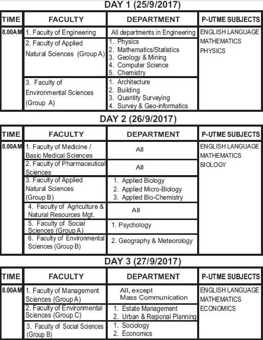 Candidates awaiting the results of NABTEB, WAEC (May/June) and NECO (June/July) 2017 are eligible to apply. Note however, that results released after October 31, 2017 shall not be accepted. Also, inconsistency in name is not acceptable to the university and may lead to disqualification. Candidates’ names on their O’Level certificates and UTME results and other registration documents must be the same.